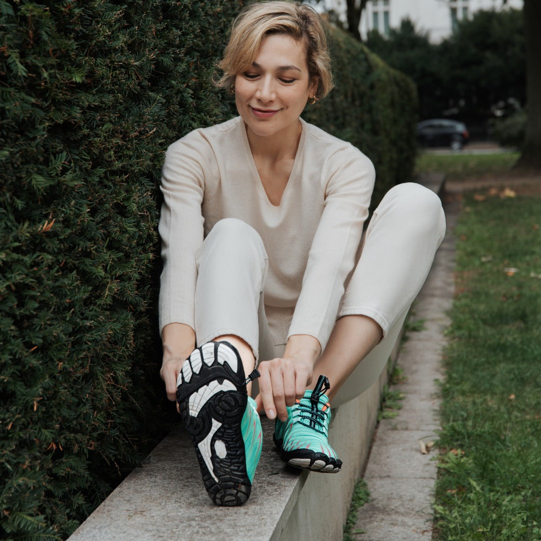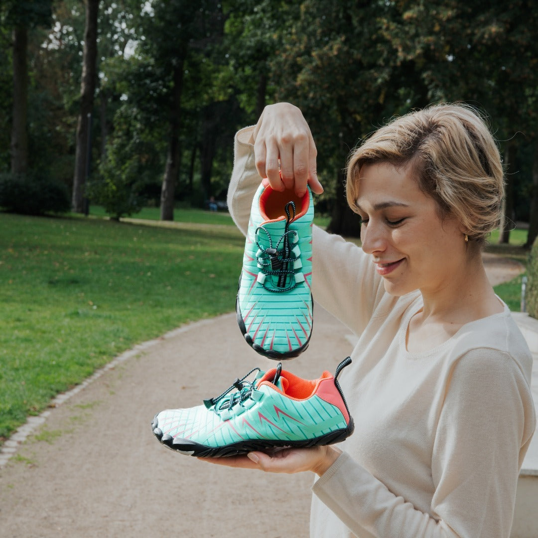 La puntera ancha y el diseño de caída cero promueven una posición natural del pie y ayudan a fortalecer los músculos del pie con el tiempo, lo que es especialmente beneficioso para las personas con pies planos.