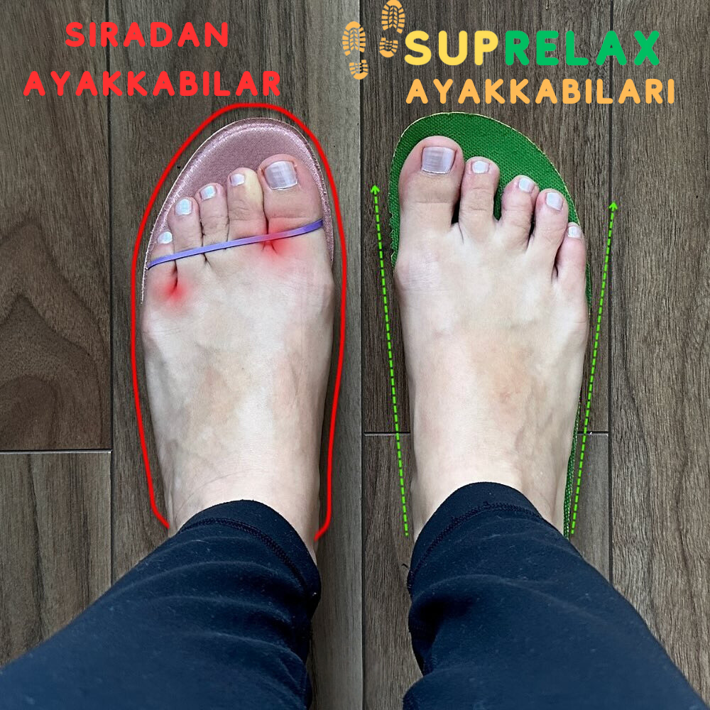 Sıradan ayakkabılar ayaklarınızı sıkıştırır ve ağrıya neden olur. SupRelax ayakkabıları, ayaklarınızı rahatlatır ve konforlu bir deneyim sunar. Her adımda özgürlüğü ve rahatlığı hissedin!