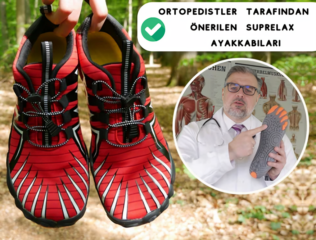 Doktorlara göre, yalınayak yürümek, insanın en doğal ve sağlıklı yürüme biçimidir. Hepimiz ayakkabısız doğduk ve binlerce yıldır bu şekilde yürüdük. Doğamız gereği, hayatı yalınayak yaşamak en sağlıklı olanıdır. Bunu sağlayan SupRelax ayakkabıları ile ayakkabınızda yalınayak rahatlığı sunuyoruz ve böylece yürürken bitmek bilmeyen Günün sonunda ezilmiş ayak parmakları veya bitmeyen bilek,topuk ağrıları artık yok!