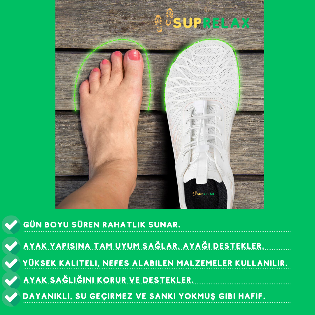 SupRelax ayakkabıları, esnekliğe öncelik vererek ayak ağrılarından muzdarip olanların hayatını kolaylaştırıyor. Hafif ve esnek yapısı sayesinde, ayağınıza baskı yapmadan rahat hareket etmenizi sağlar. Ayaklarınız için ideal rahatlığı yaşayın ve her adımda konforu hissedin.